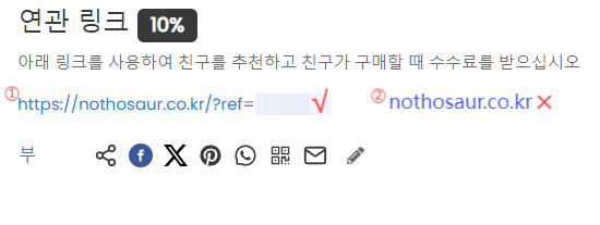 전용 URL과 할인 코드를 복사하여 SNS에 게시합니다.